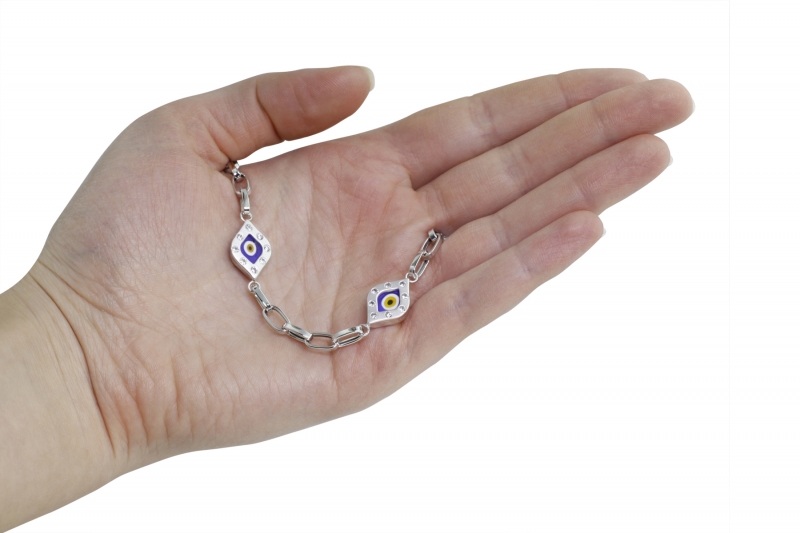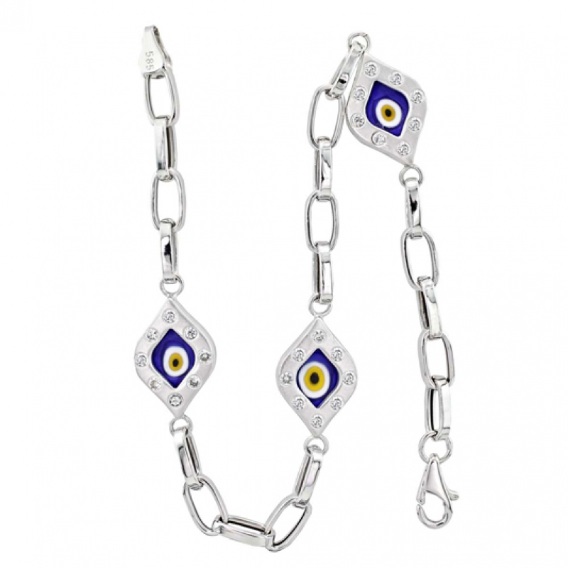 Taşlı Çekik Göz Motifli Beyaz Bileklik