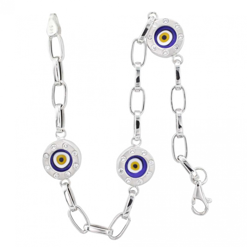 Taşlı Yuvarlak Beyaz Altın Bileklik