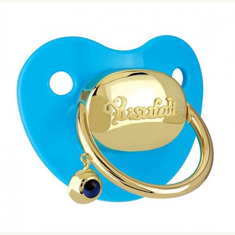 Kabartma İsim Yazılı Altın Emzik 18 ayar