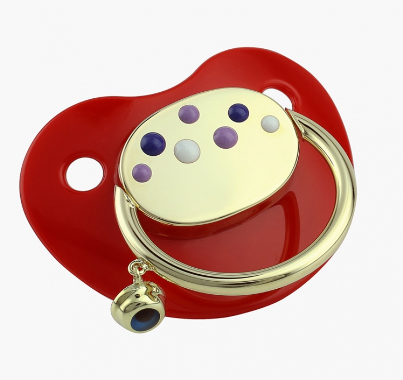 Kırmızı Renkli Damla Taşlı Altın Emzik