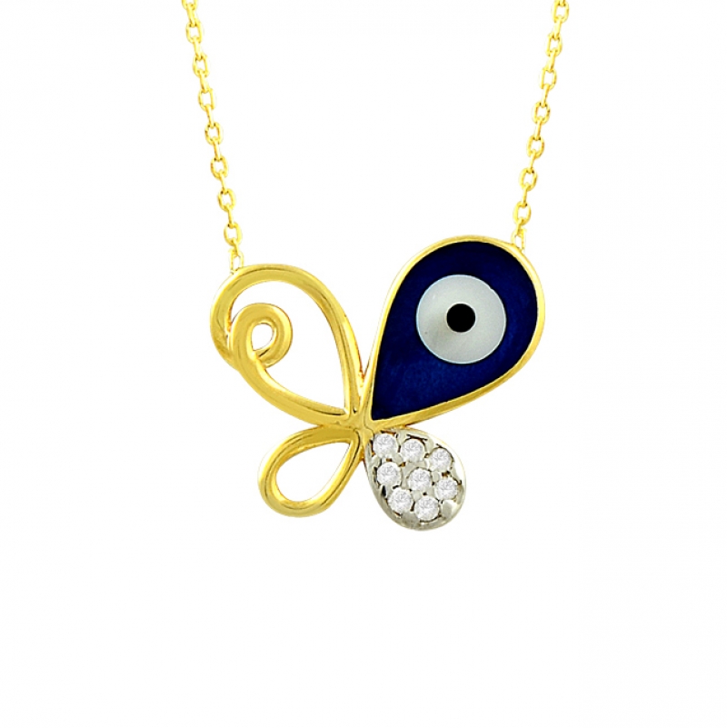 Nazar Boncuklu Kelebek Altın Kolye