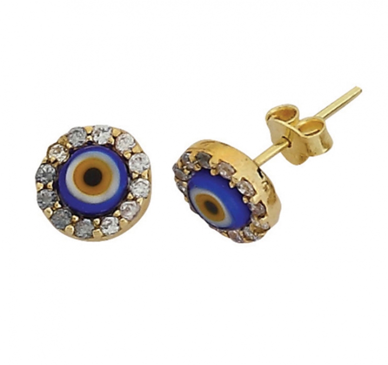 Yuvarlak Nazar Boncuklu Göz Küpe