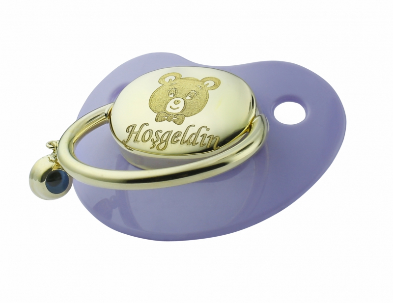 Ayıcık Figürlü Altın Emzik-Mor