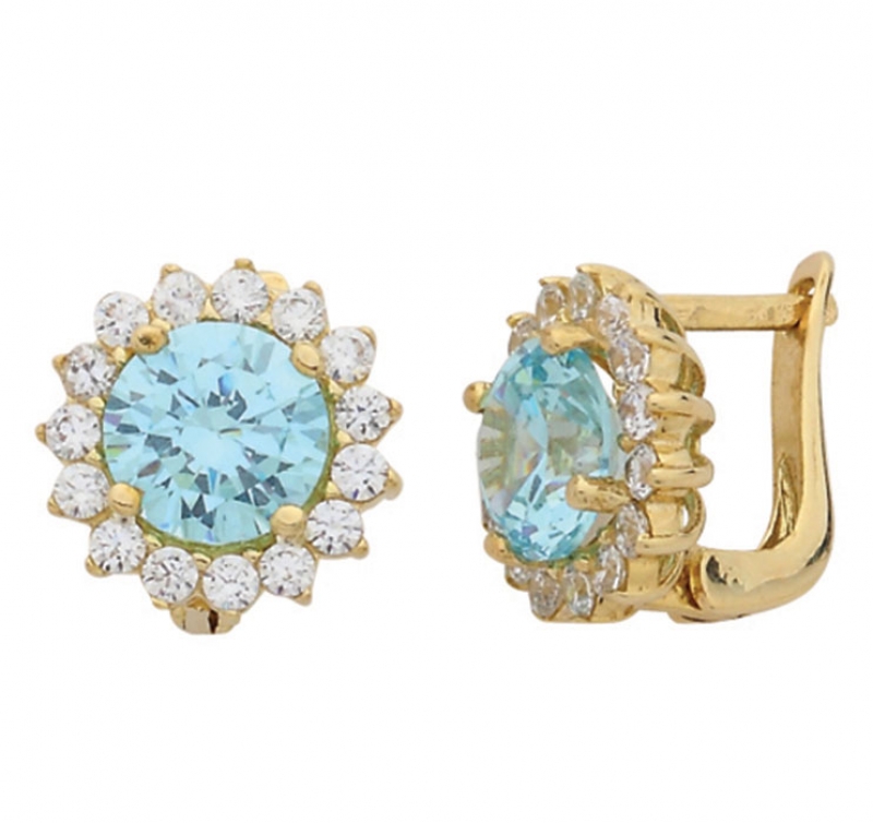 Turkuaz Yuvarlak Taşlı Altın Küpe