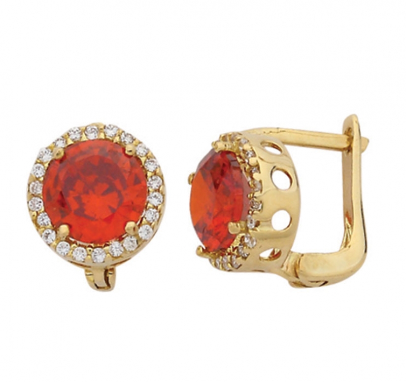 Yuvarlak Kırmızı Taşlı Altın Küpe