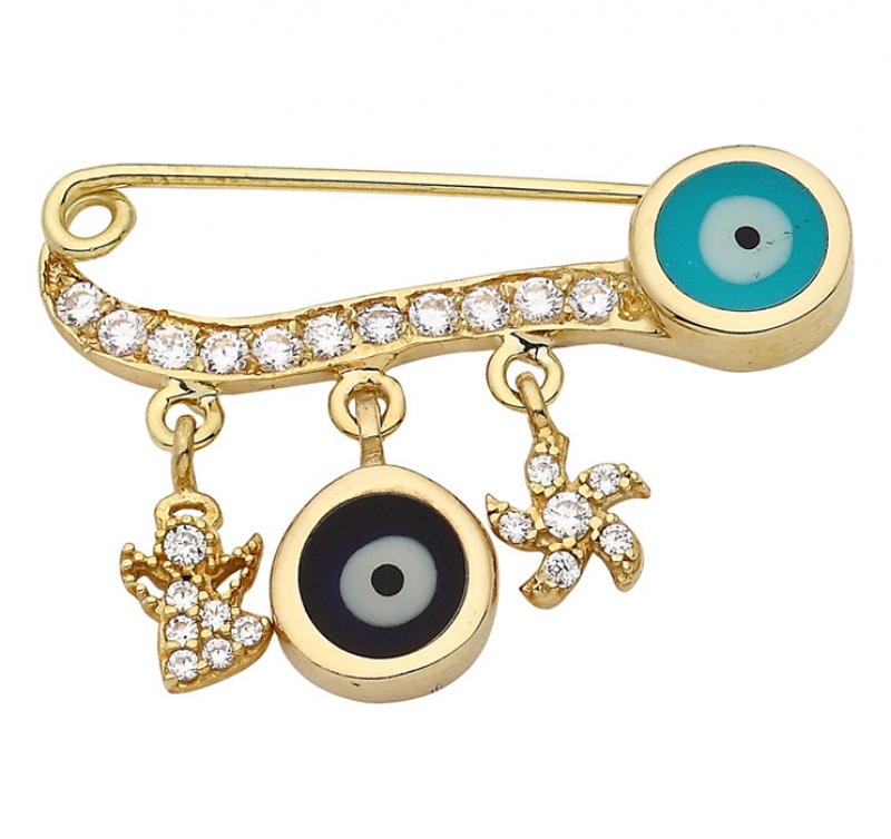 Melek Nazar Boncuklu Rüzgar Gülü Altın İğne