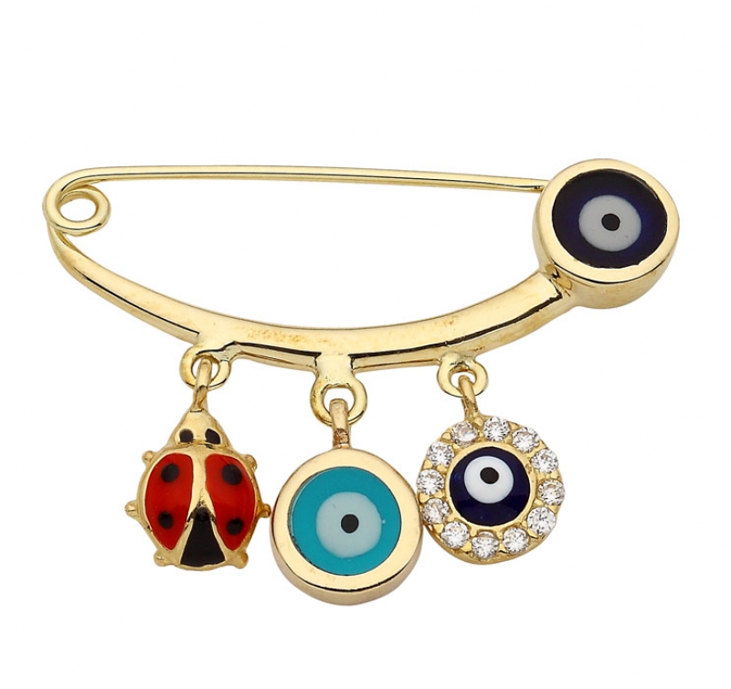 Uğur Böcekli Taşlı Çengelli İğne