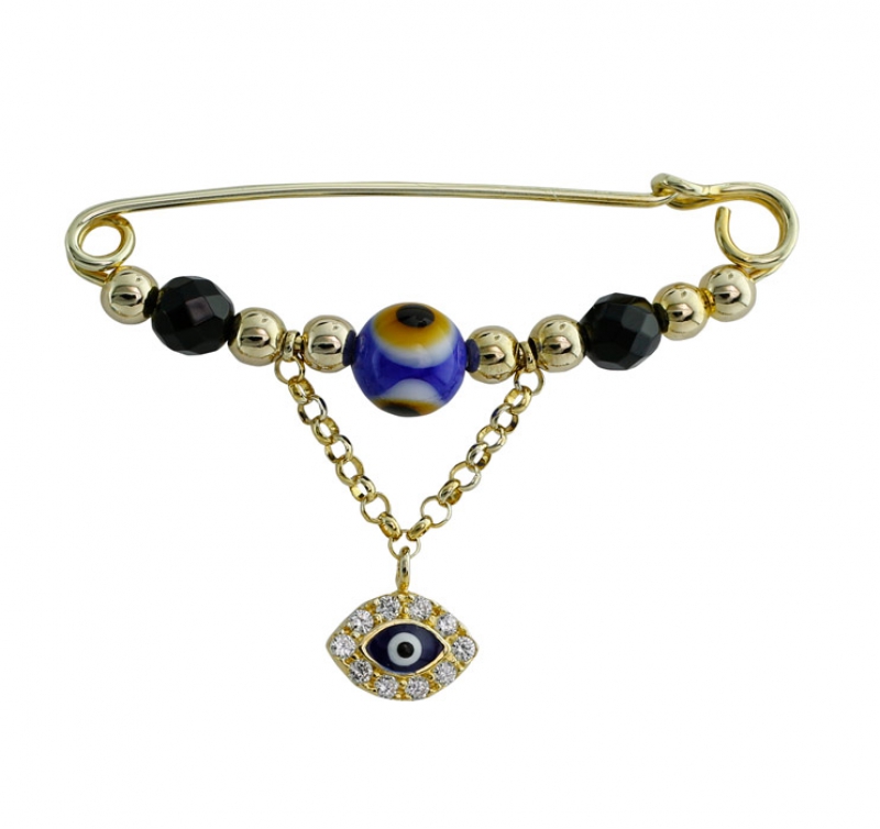 Siyah, Sallanan Göz Nazar Boncuklu Çengelli İğne