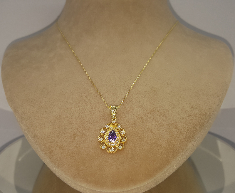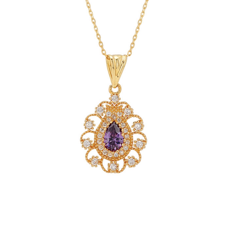 Eflatun Damla Taşlı Altın Kolye