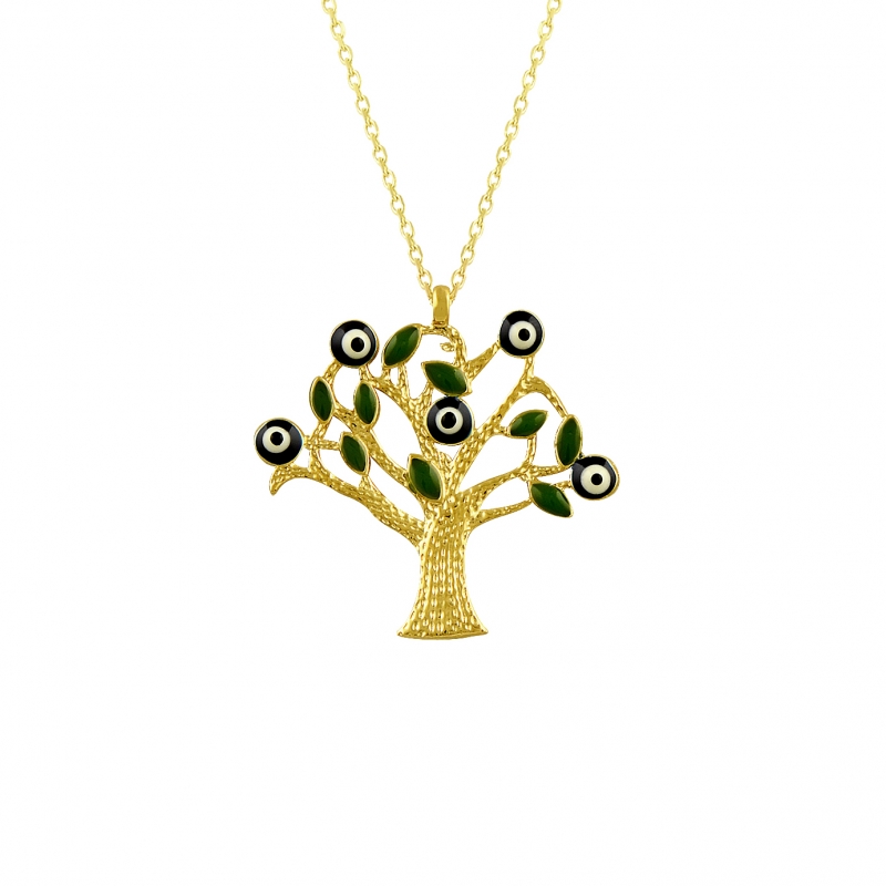Nazar Boncuklu Ağaç Altın Kolye