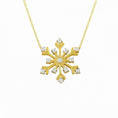 Uçları Taşlı Kar Tanesi Altın Kolye