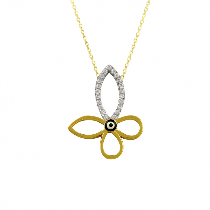 Nazar Boncuklu Çiçek Altın Kolye