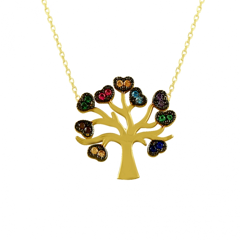 Renkli Kalpten Oluşan Ağaç Altın Kolye