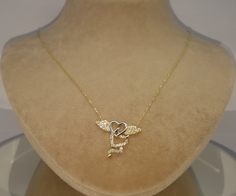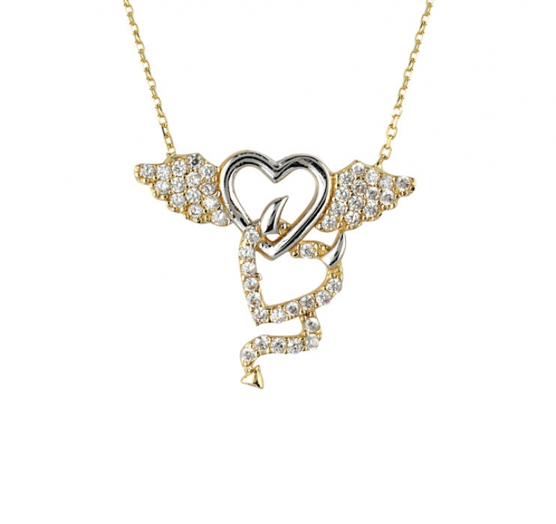 Şeytan ve Melek Figürlü Kalp Kolye