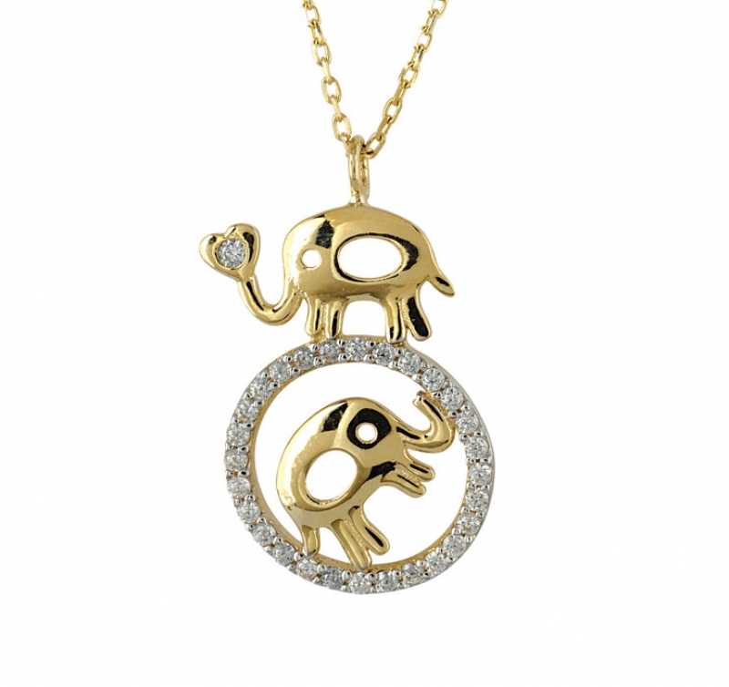 Fil Motifli Şans Altın Kolye