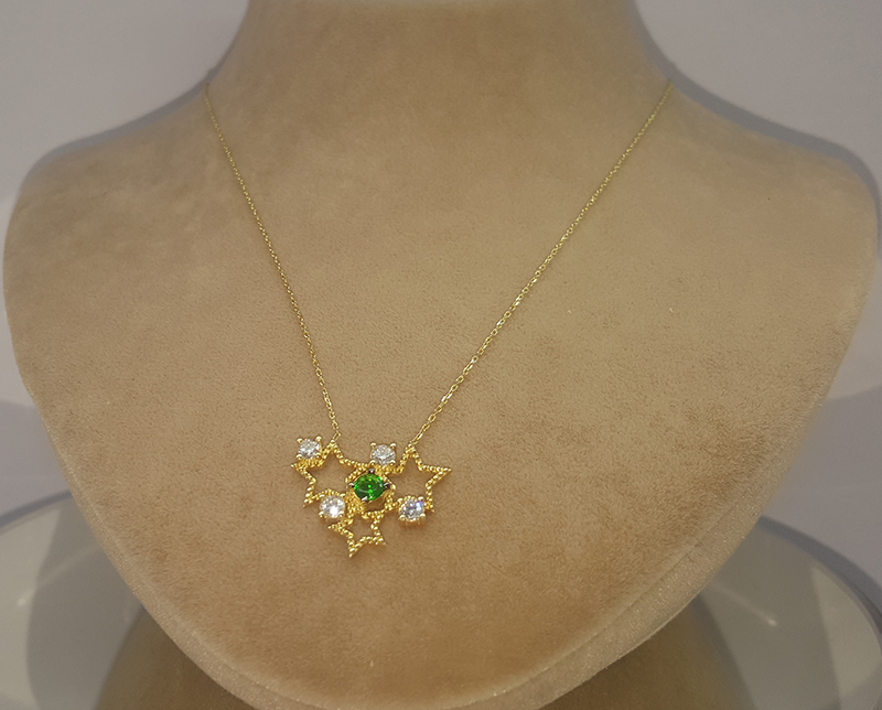 Üç Yıldızlı Yeşil Taşlı Altın Kolye