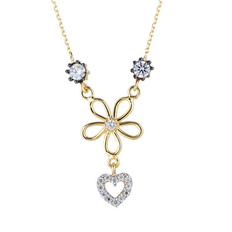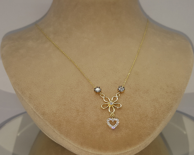 Çiçek Altında Kalp Kolye