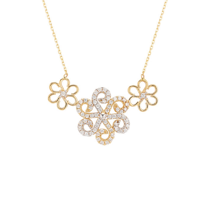 İç İçe Çiçek Altın Kolyes