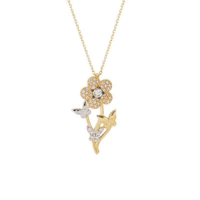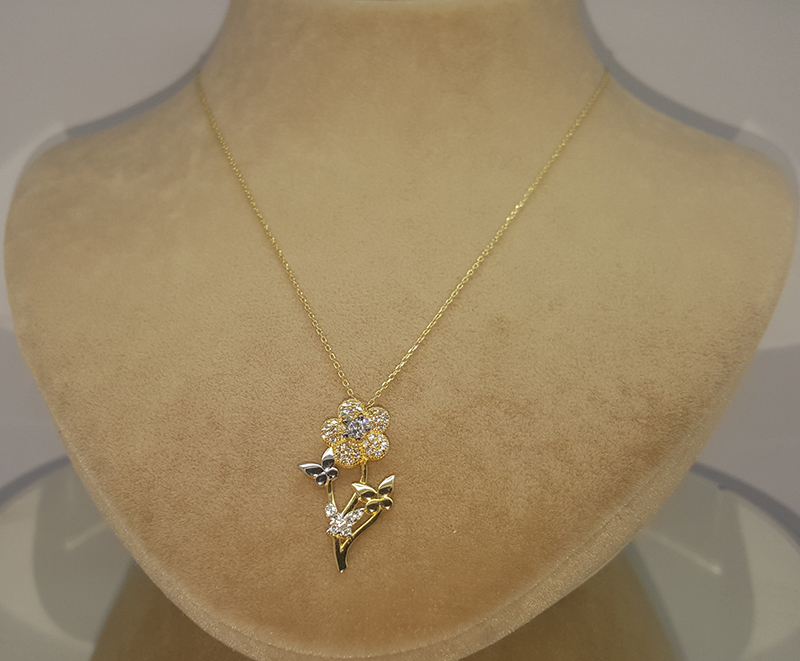 Çiçek Motifli Altın Kolye