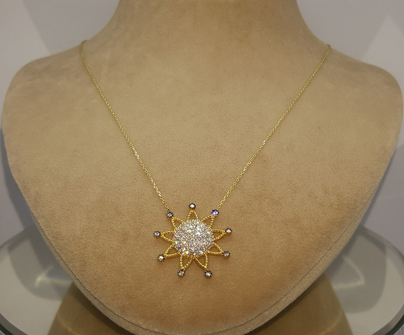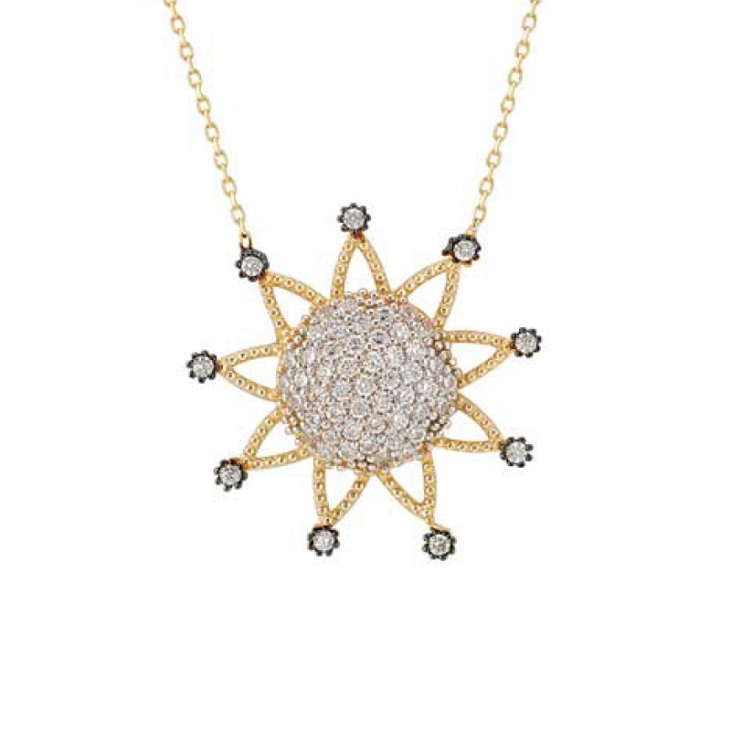 Taşlı Güneş Altın Kolye