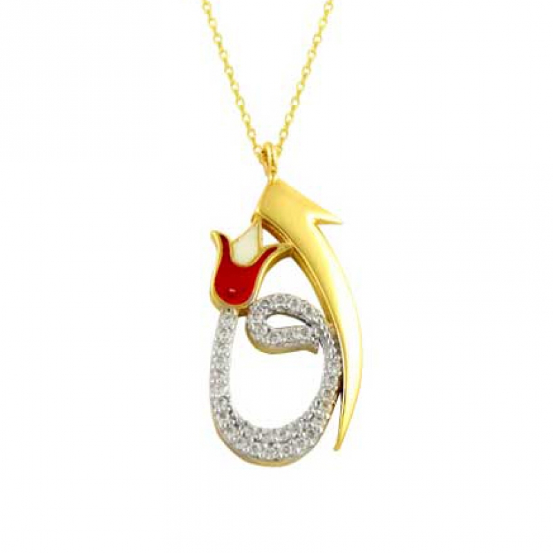 Laleli Vav Altın Kolye