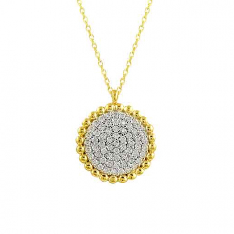 Yuvarlak Ortası Taşlı Altın Kolye