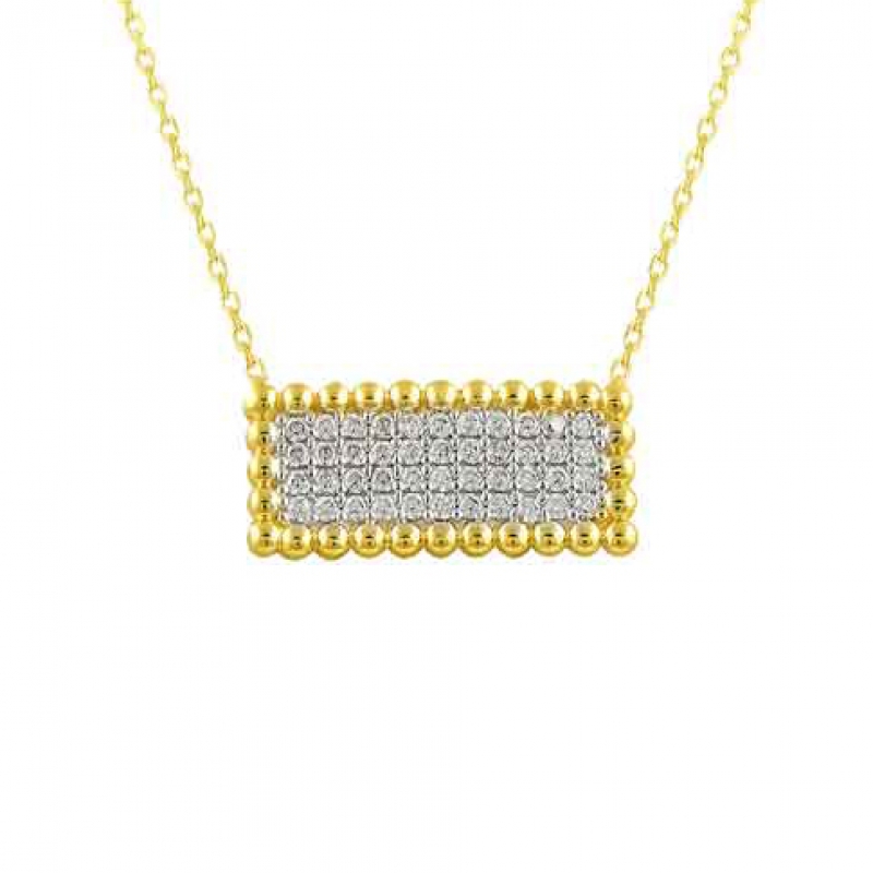 Dikdörtgen İçi Taşlı Altın Kolye