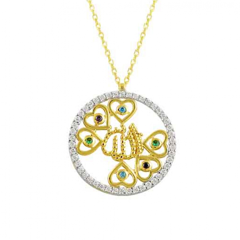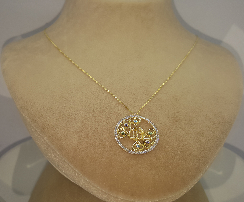 Yuvarlak İçinde Kalpli Allah Yazılı Altın Kolye