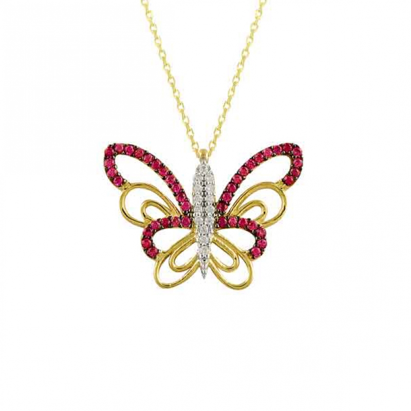 Çok Kanatlı Renkli Altın Kolye