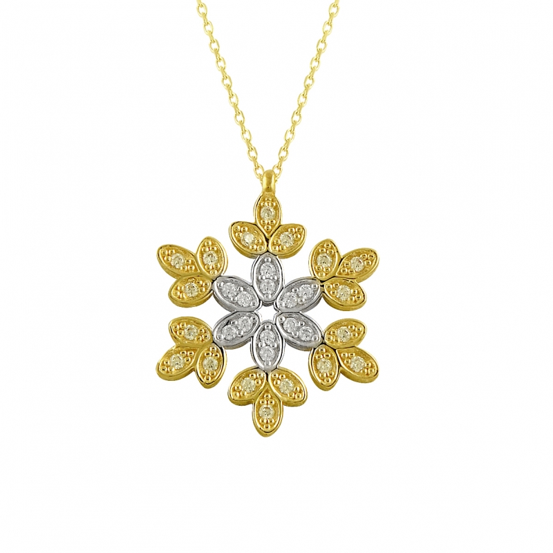 Çiçeklerle Çevrili Çiçek Altın Kolye