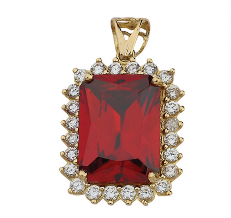 Kırmızı Kare Taşlı Kolye Ucu