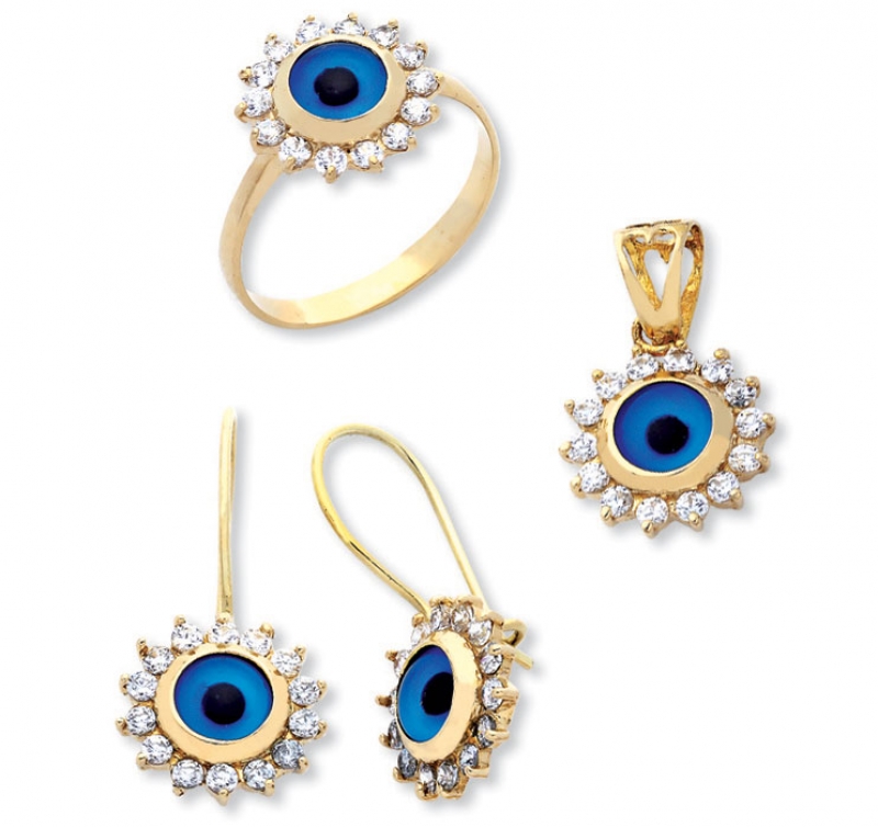 Güneş Motifli Üçlü Altın Takım