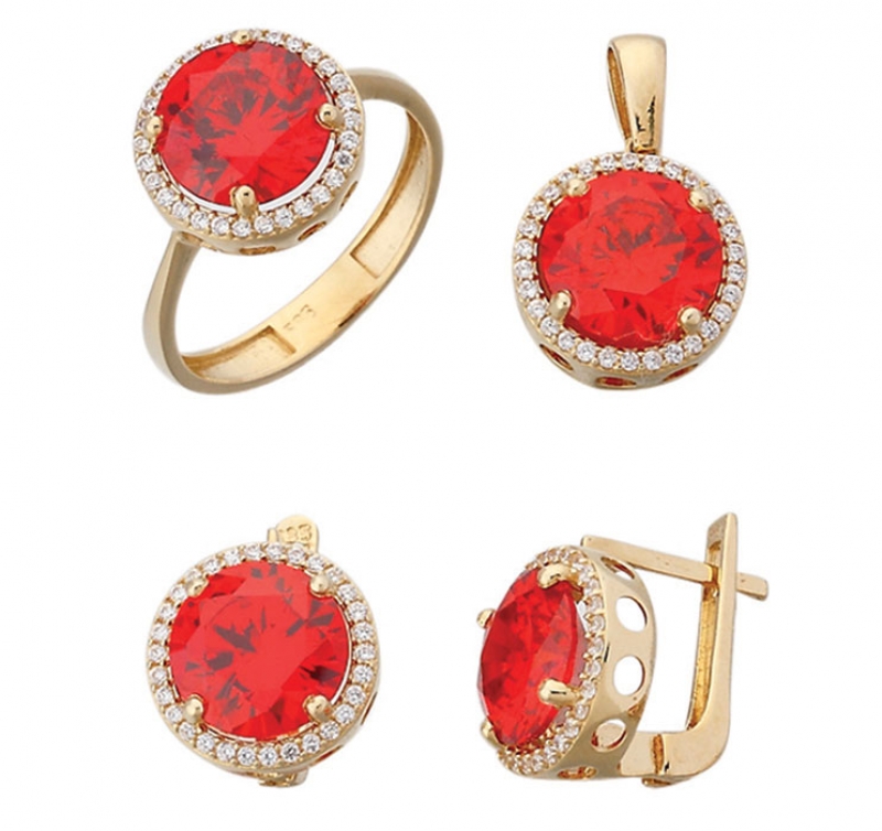 Yuvarlak Kırmızı Renkli Taşlı Set