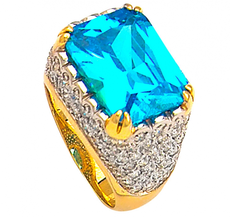 Yüksek Montürlü Mavi Taşlı Yüzük